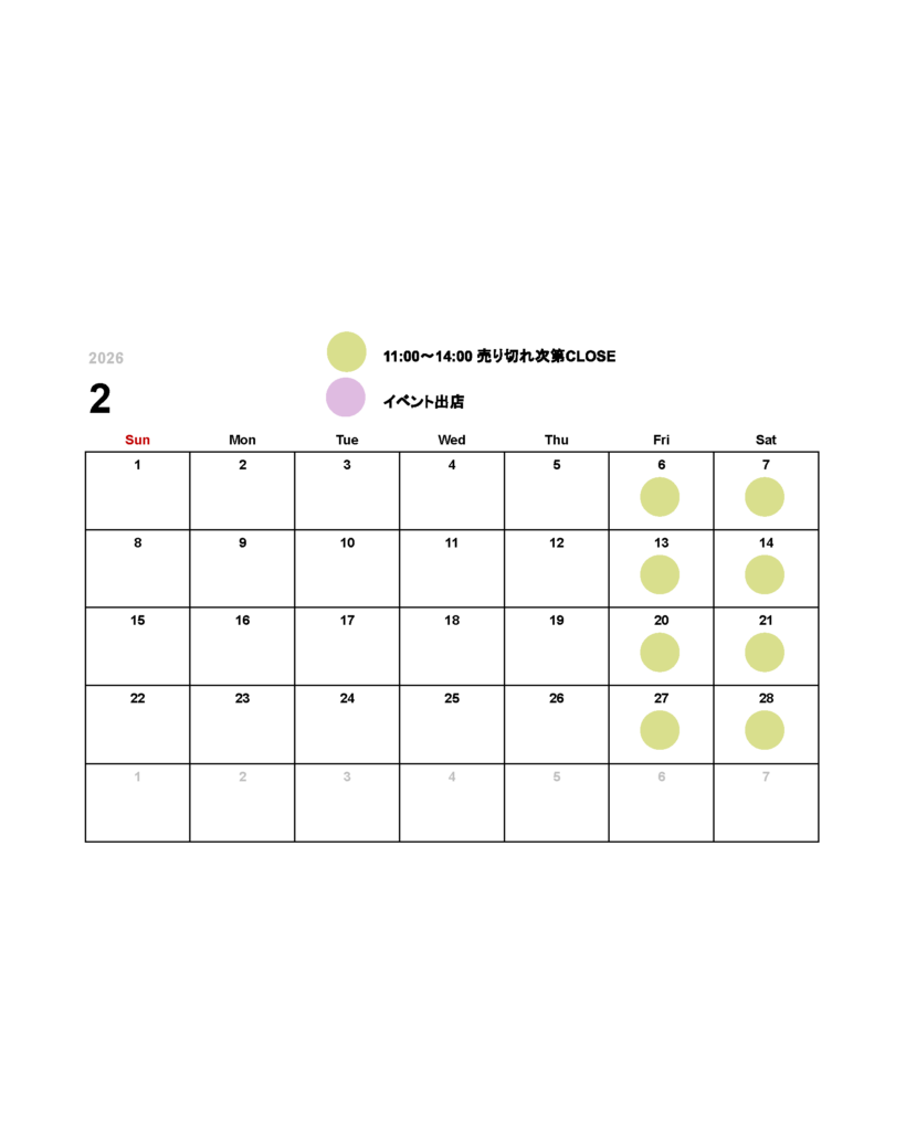 2月も元気に金・土曜日の11:00〜14:00に営業いたします。本年もどうぞよろしくお願いします。